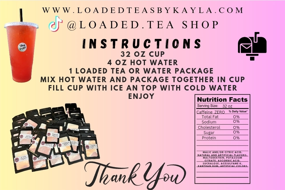 Flavored WATER - Refreshing Beverage for on the go. ZERO CAFFEINE taste like a loaded tea without the caffeine. 100% sugar-free flavors sweetened with sucralose. These are so easy to make and are ready for you to make on the go.